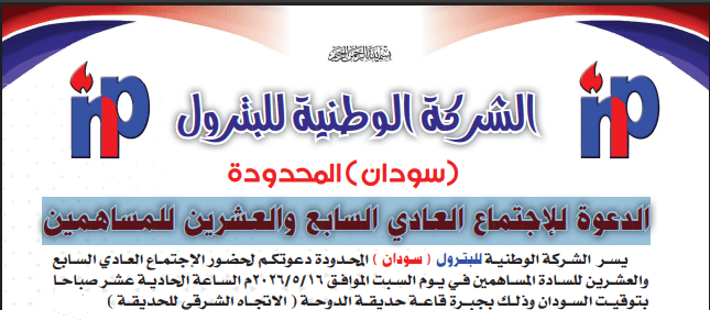 يسـر الشـركة الوطنيـة للبتـرول ( سـودان ) المحـدودة دعوتكـم لحضـور...